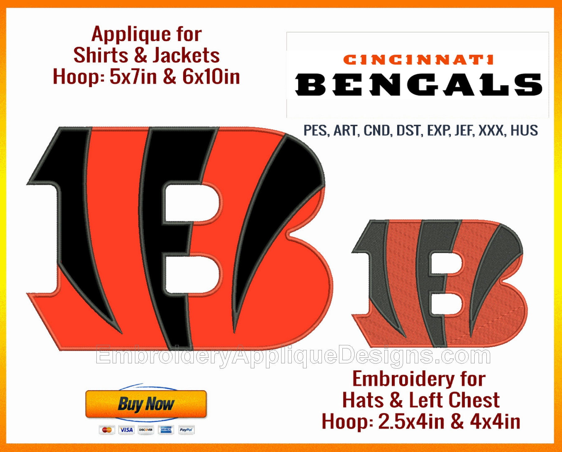 Cincinnati Bengals – Sports Team Logo – available as BOTH Applique and Embroidery | Sizes fitting 2.5x4in, 4x4in, 5x7in and 6x10in hoops